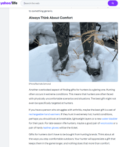 Note: This Yahoo Life “Best Gifts for Hunters” article was picked up from Field & Stream – that’s another 497K audience.
